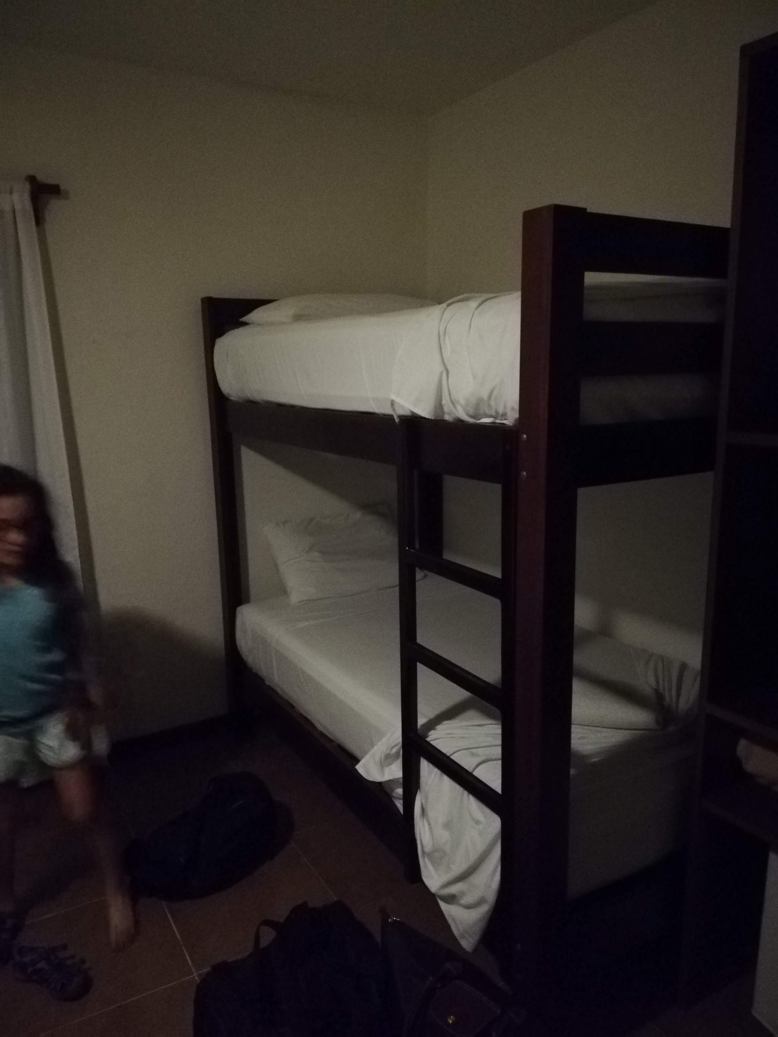 We arrived at the hotel Posada Pachamama, and I’m still thankful that the location was so close to the bus stop. The site was convenient for almost everything. There was a small store at the end of the street where we purchased water and some fresh fruit and avocado, and it was only a minute walk to the main beach. The hotel Posada Pachamama has approximately ten rooms on two different floors. The room itself was comfortable enough for a family of five. There were two double beds and a bunk bed. The top bunk bed was very high, so we all slept to the bottom beds.