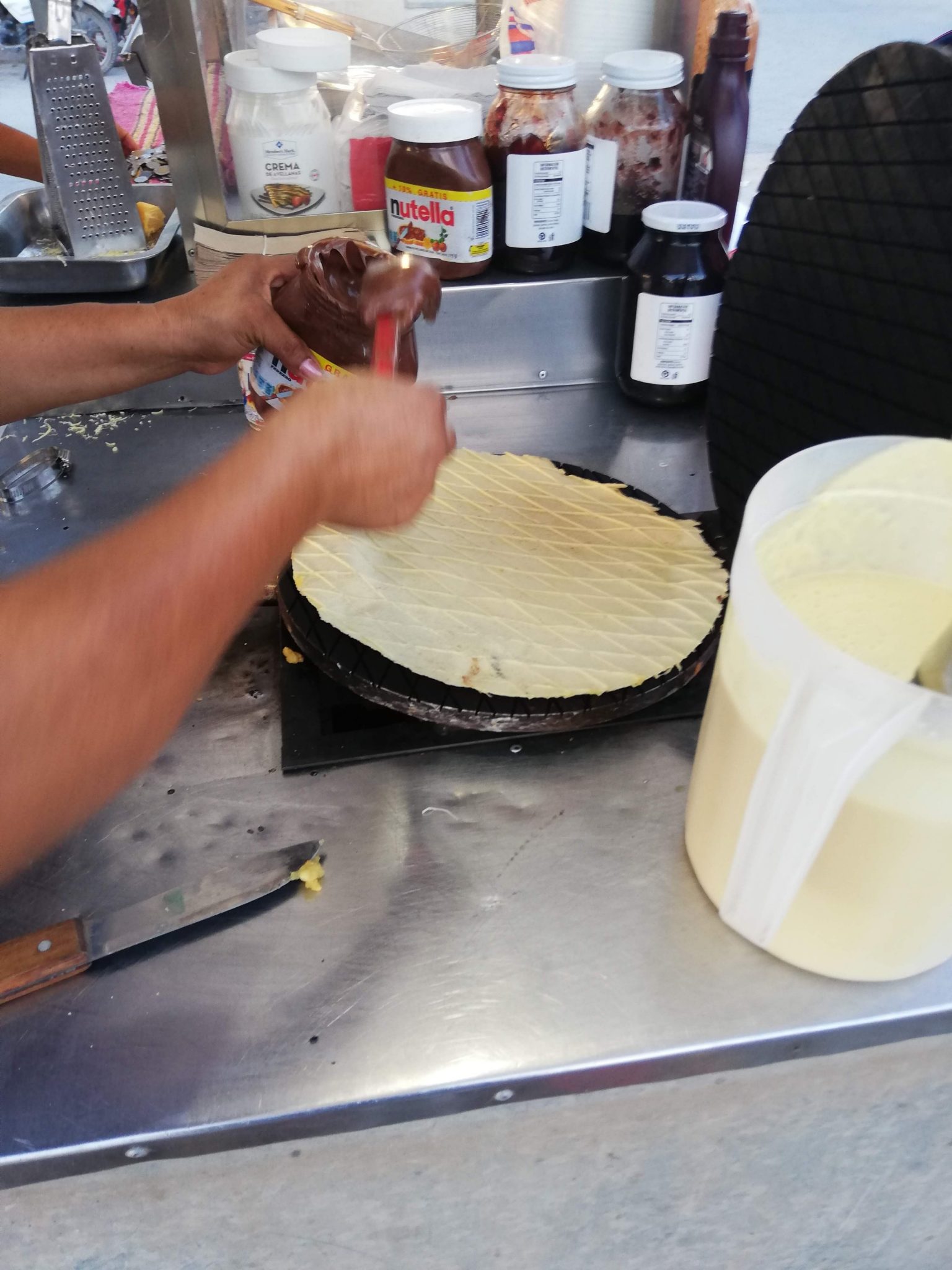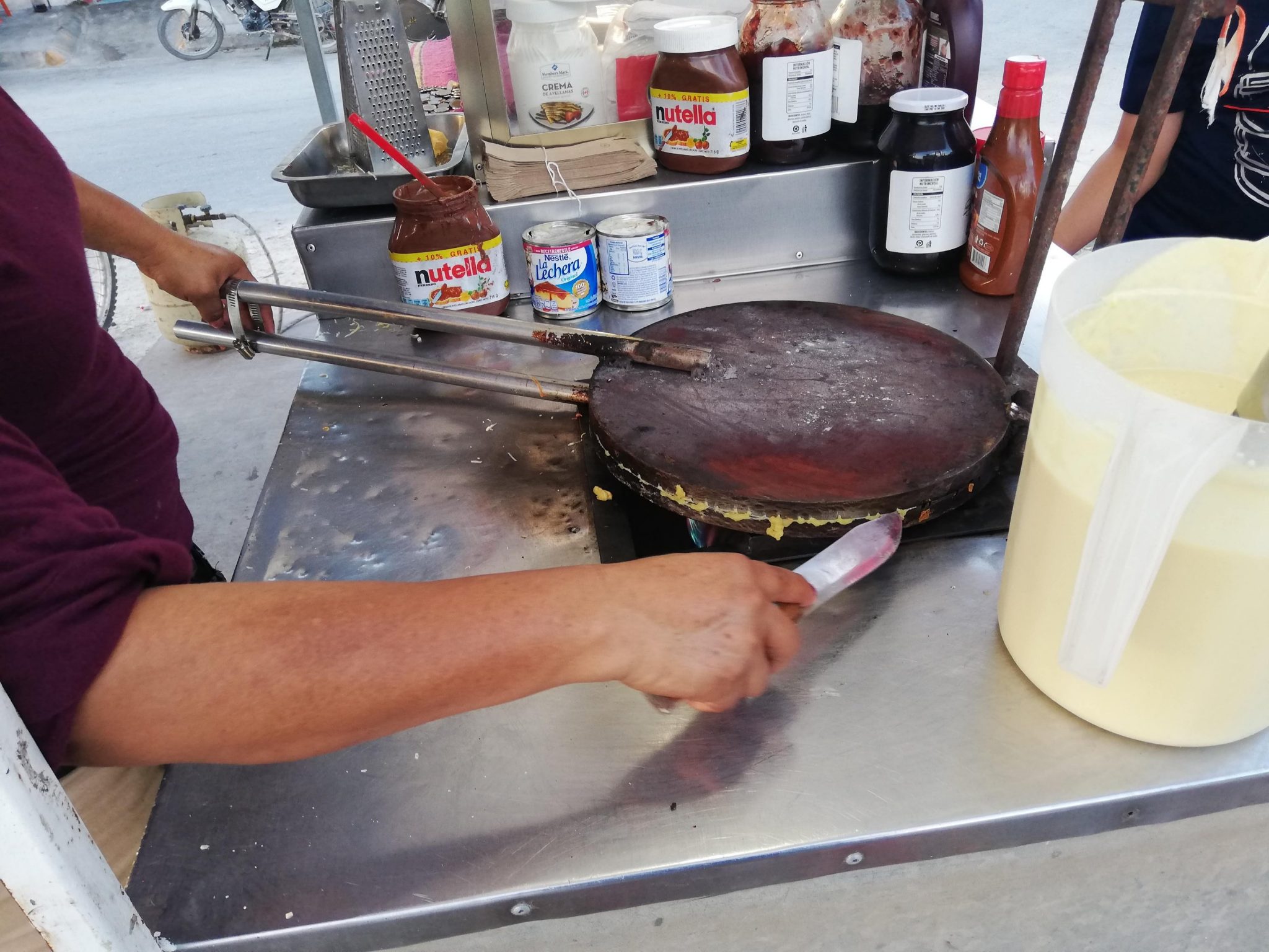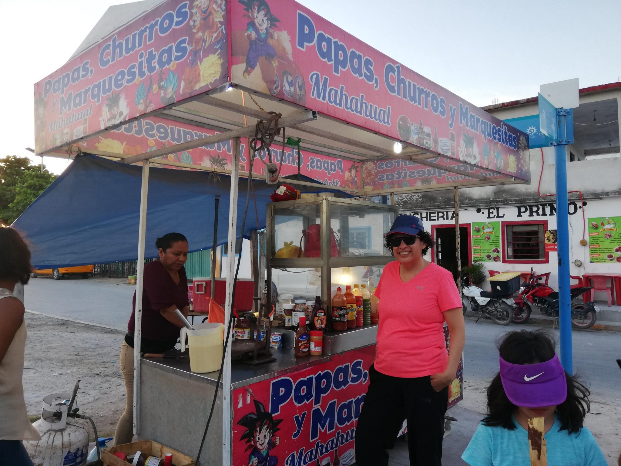 I’m pretty sure that’s how you spell delicious in Spanish. We saw the stand as we arrived in town and decided to try it after dinner the next evening. We found this little treat, and it is a definite must-have while you’re in Mahahual. There is a small stand that said Churros and Marquesitas. We went for the Churros, but they didn’t have any. We were a little down but decided to take the plunge and try the Marquesitas. It looks like a crepe but a little crispier. It is filled with all sorts of different things, and then it is folded lengthwise twice. The kids chose Nutella, Charo, and I recommend the Nutella with cheese.