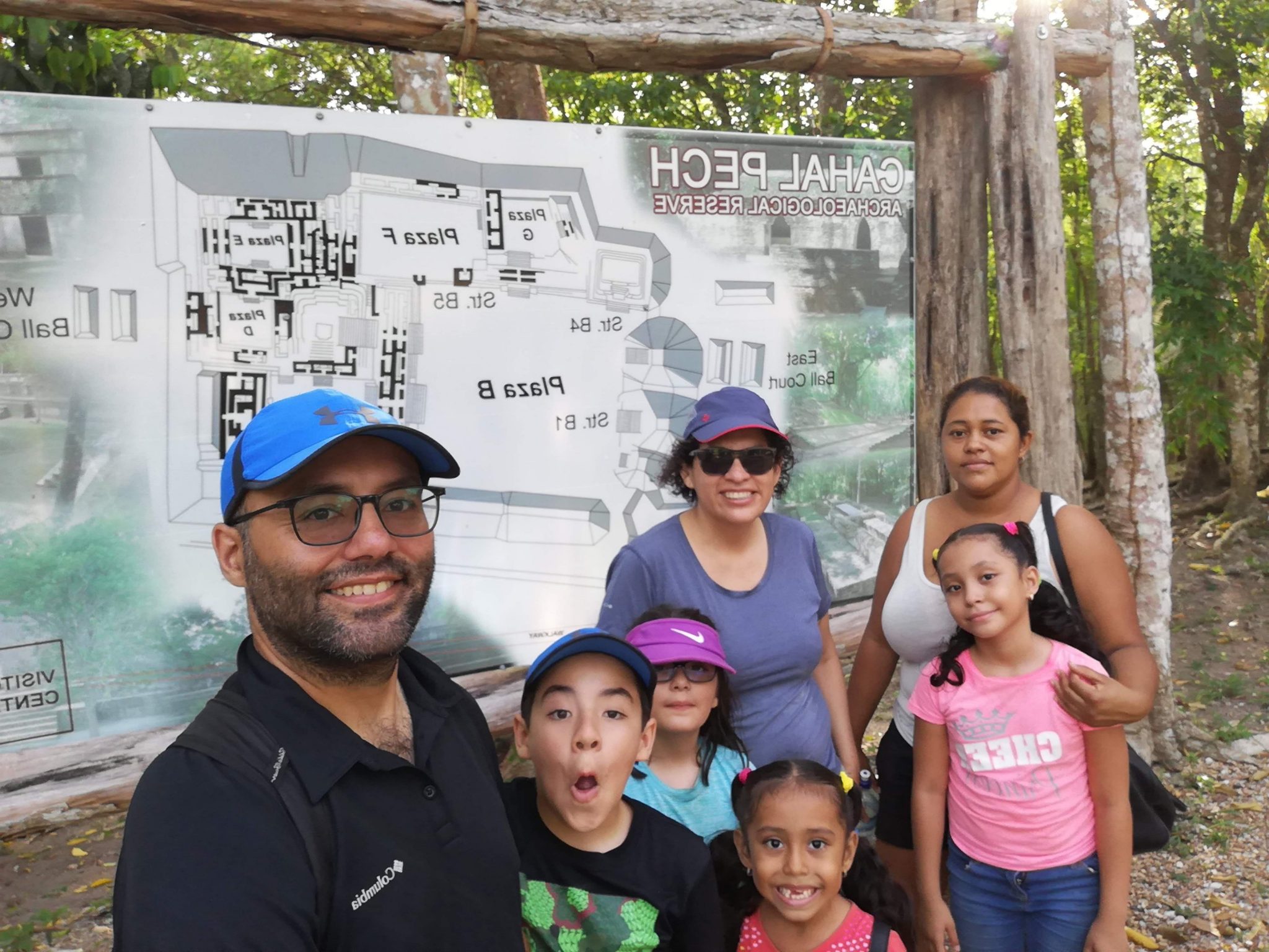 Our friends, and the map of Cahal Pech. If you find yourselves in San Ignacio, all of us, except Mateo, recommend going to Cahal Pech.