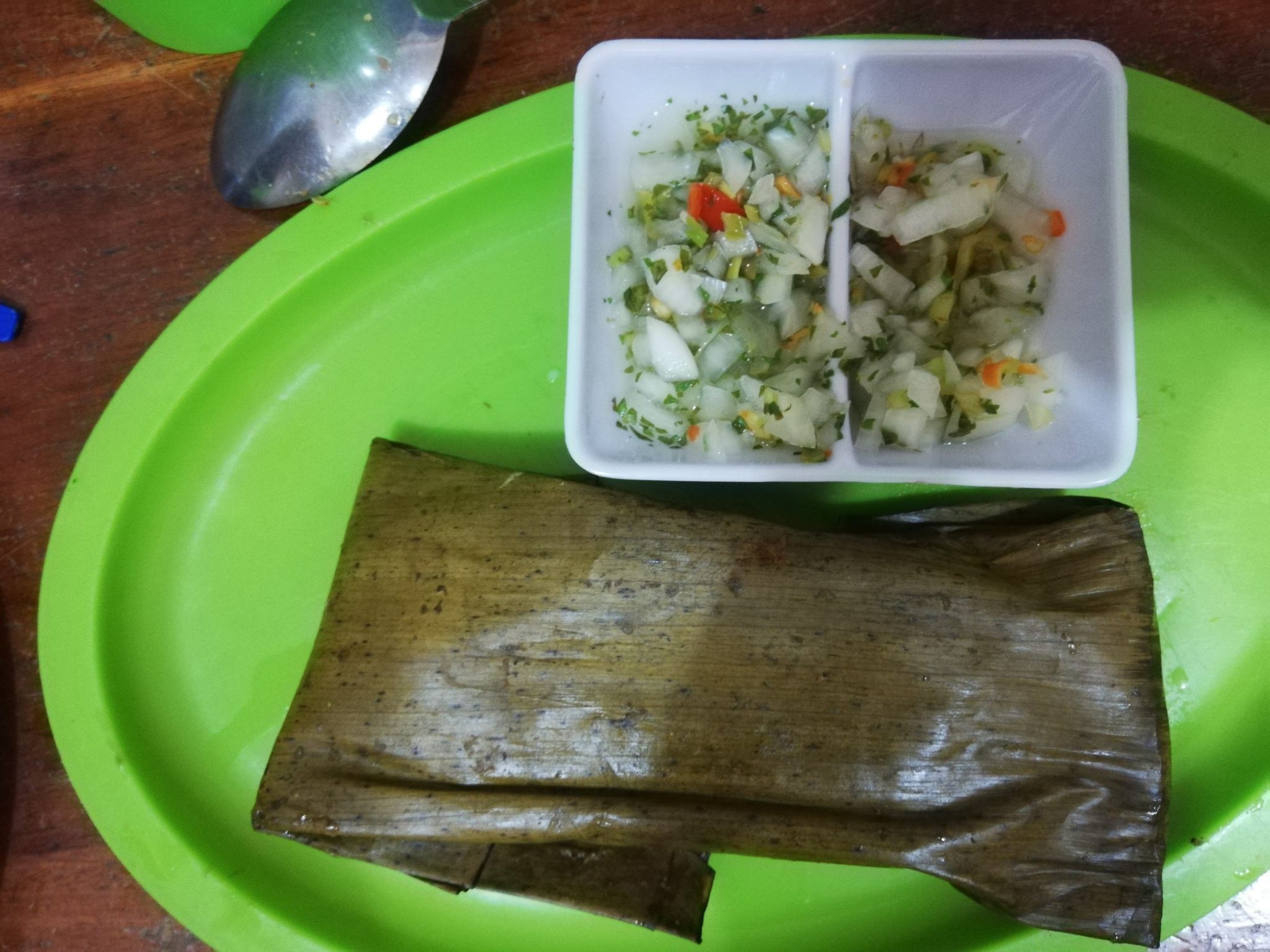 Another dish we had was tamales. This tasty goodness came wrapped in a banana leaf. However, where are the best ones to be had? Well, in the middle of town near a crosswalk, a lady was set up with a giant pot. Not your regular stand! She has only so many, so get there fast, she shows up around 5:30 pm, and I’m guessing stays till it’s all gone. I can tell you, from the taste, she must sell out quite fast!