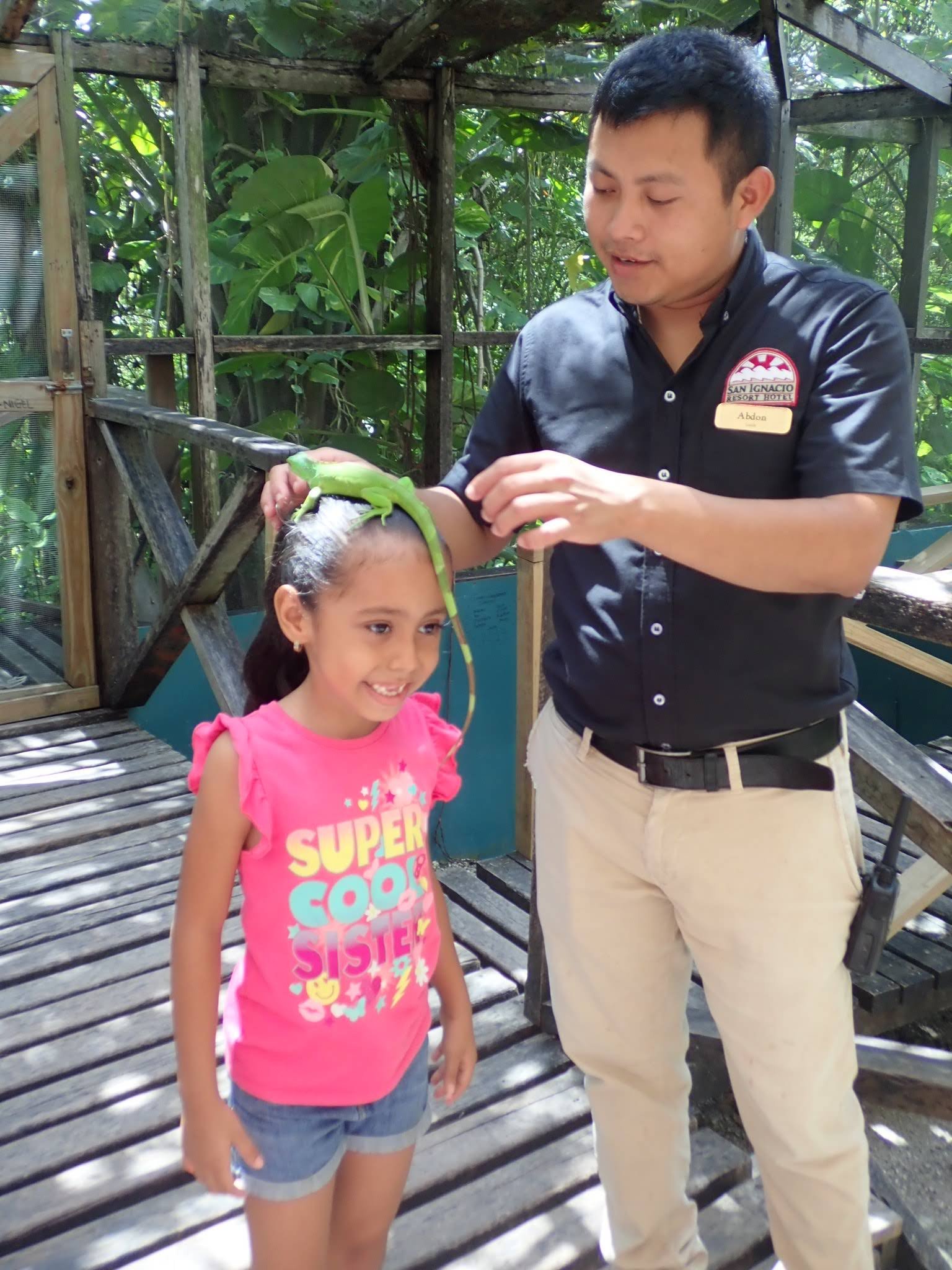 The Green Iguana project at the San Ignacio resort hotel is a must-do! When we went, once again, we were fortunate to be the only tour going on. We were able to interact with the iguanas and feed them. All the kids had fun until…