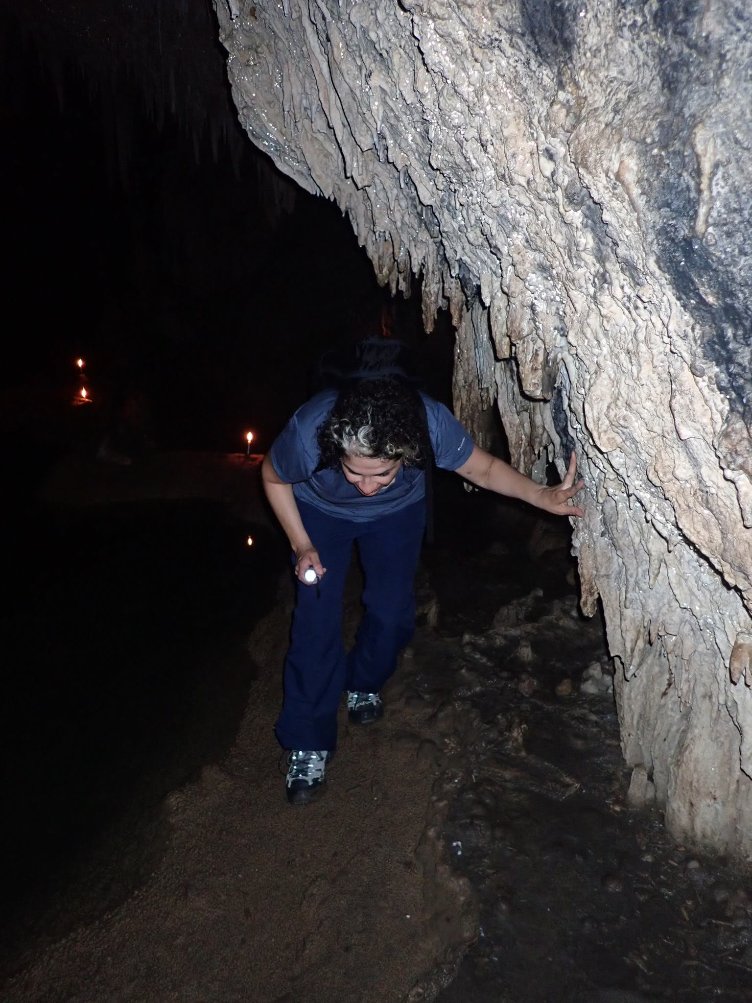 The cave was a little challenging to navigate. All of us wet our feet in many of the small pools that we were trying to avoid. Our intrepid Charo fell once onto a stalagmite. Not only was it painful at the moment, but it gave her a very purply bruise as a reminder of her adventure.