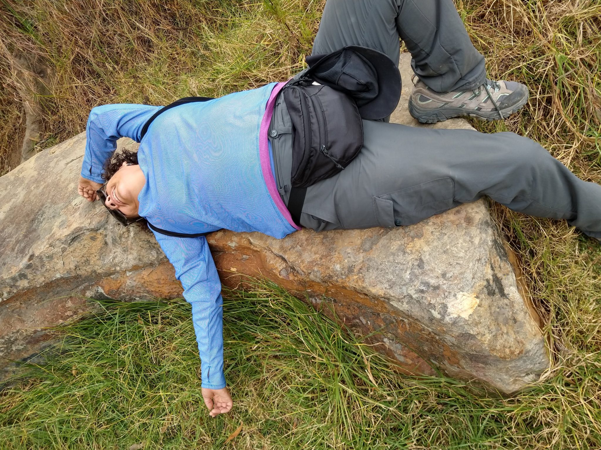 Charo looks like she could have fallen sleep on that enormous rock.