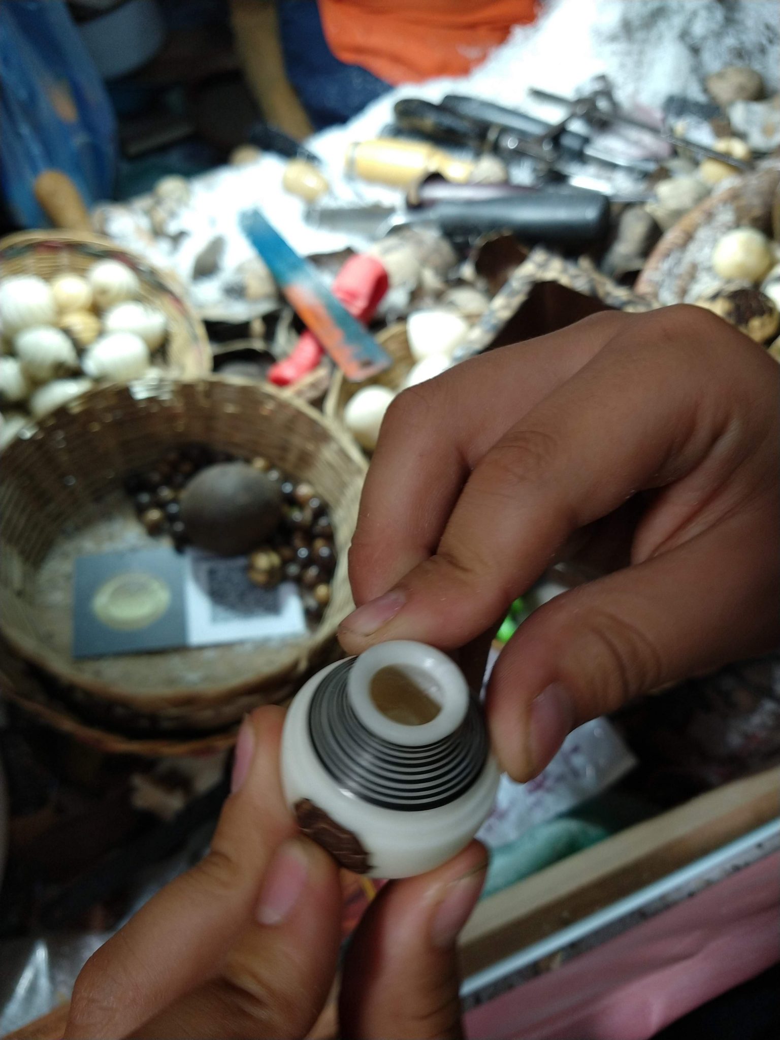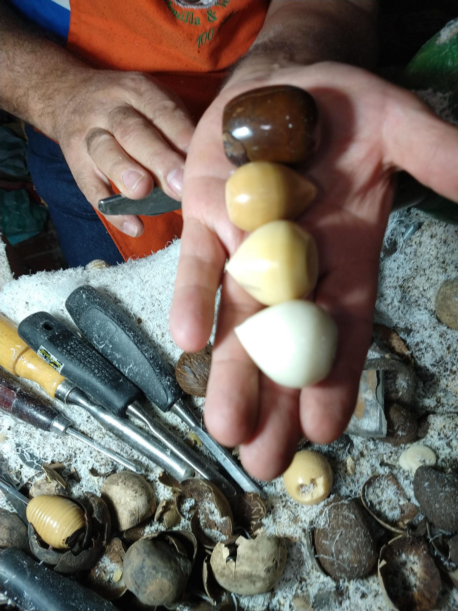 The moments that held the kids’ interest the most came at Taller Tagua in the small town of Tinjacá. The material used here is actually from a nut and is dried anywhere from a year to 40 years. When carved, it takes on 95% the smoothness of ivory, and is very dense, making it very hard to break.